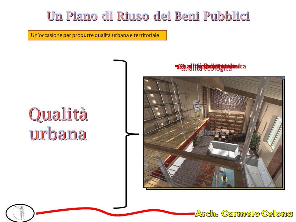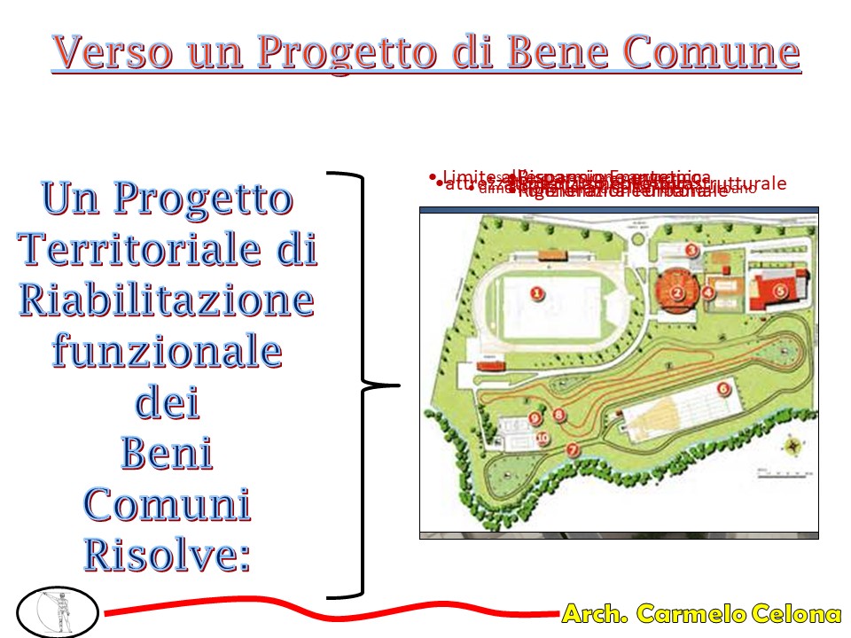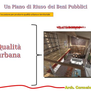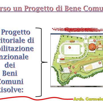La proposta avanzata dall’arch. Celona è quella di avviare una progettazione partecipata strategica per una riabilitazione civile sostenibile che rifunzionalizzi civilmente e architettonicamente tutti gli edifici e gli spazi pubblici che ricadono nel territorio comunale. Una proposta che si colloca all’interno di una nuova visione strategica di pianificazione territoriale che guarda al limite (inteso come consumo zero di suolo naturale) come una risorsa e non come una censura.